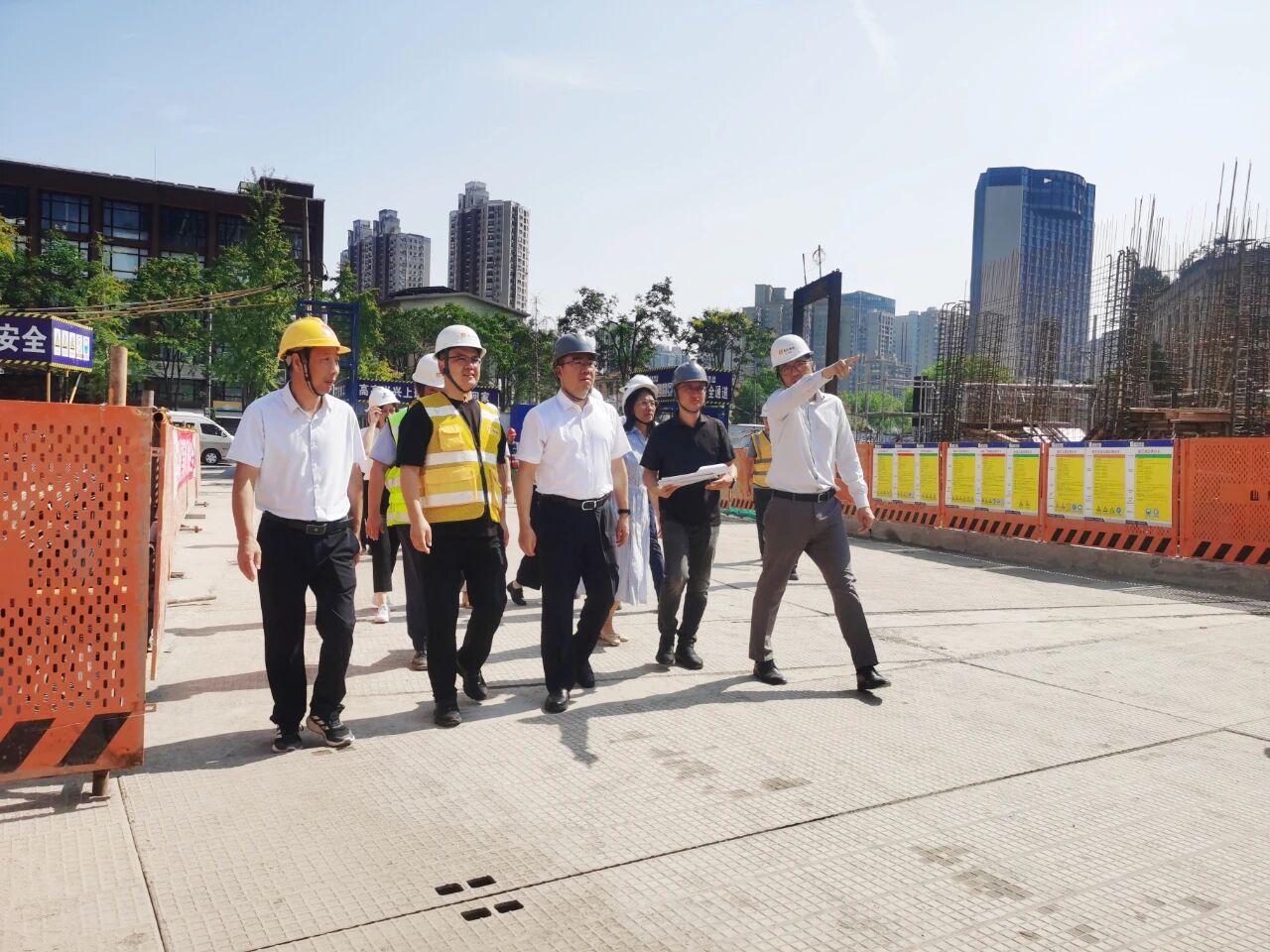 9月17日上午,上海市虹口區(qū)委書(shū)記李謙率隊(duì)蒞臨集團(tuán)承建的華潤(rùn)瑞府項(xiàng)目施工現(xiàn)場(chǎng)視察指導(dǎo)。集團(tuán)總裁助理李國(guó)明、項(xiàng)目負(fù)責(zé)人李陽(yáng)春予以熱情接待并全程陪同。抵達(dá)項(xiàng)目工地,李謙書(shū)記一行直奔施工現(xiàn)場(chǎng),深入一線(xiàn)了解工程施工情況,仔細(xì)詢(xún)問(wèn)項(xiàng)目工程概況、施工進(jìn)度、施工難點(diǎn)、項(xiàng)目推進(jìn)存在的問(wèn)題等事宜。集團(tuán)領(lǐng)導(dǎo)、項(xiàng)目負(fù)責(zé)人等逐一進(jìn)行匯